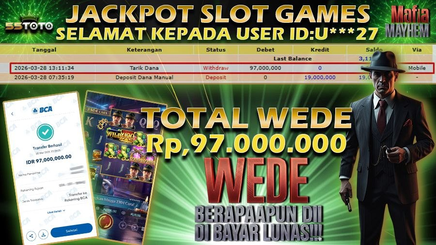 55TOTO – JACKPOT SLOT MAFIA MAYHEM 97 JUTA – 28 Maret 2026