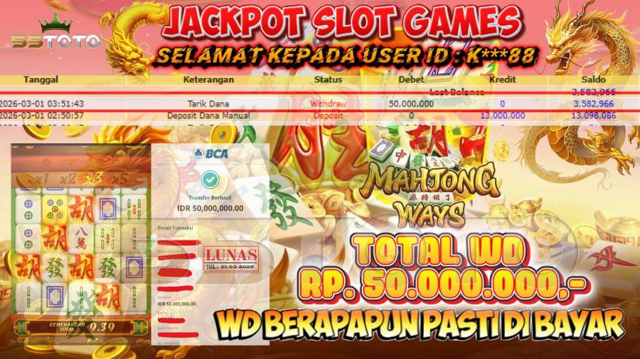 55TOTO – JACKPOT SLOT MAHJONG WAYS 50 JUTA – 01 Maret 2026