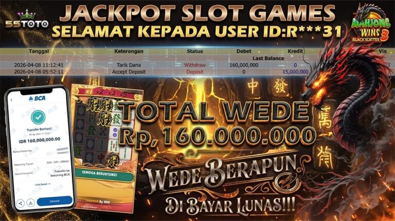 55TOTO – JACKPOT SLOT MAHJONG WINS 3 160 JUTA – 08 April 2026