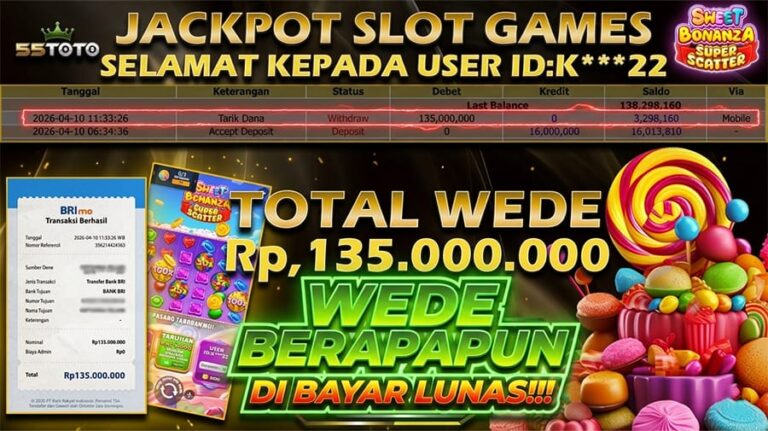 55TOTO – JACKPOT SLOT SWEET BONANZA 3 130 JUTA – 10 April 2026