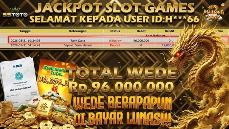 55TOTO – JACKPOT SLOT MAHJONG WAYS 96 JUTA – 31 Maret 2026