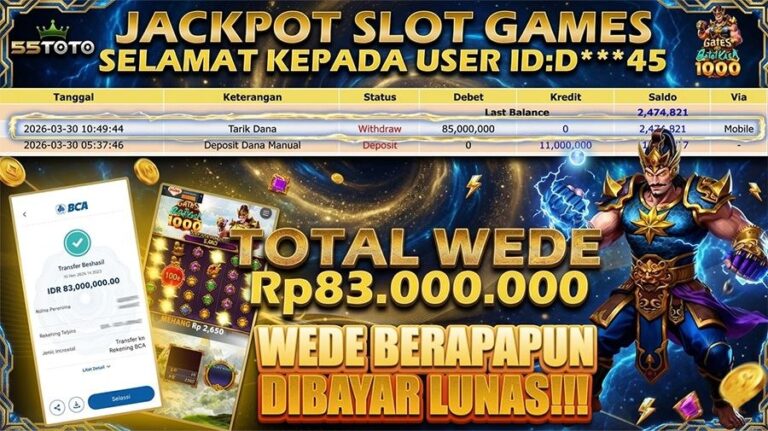 55TOTO – JACKPOT SLOT GATES OF GATOTKACA 83 JUTA – 30 Maret 2026