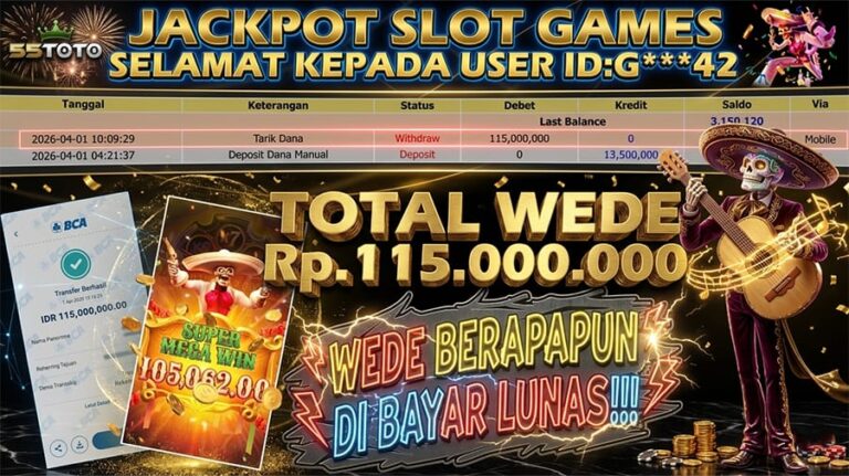 55TOTO – JACKPOT SLOT WILD BANDITO 115 JUTA – 01 April 2026